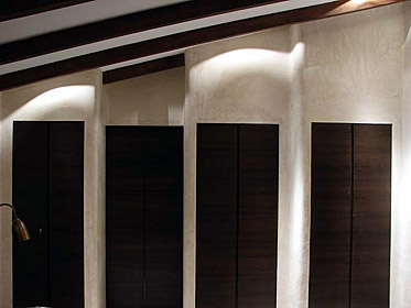teilw. Wand und Boden und Wandleuchten gearbeitet sind,